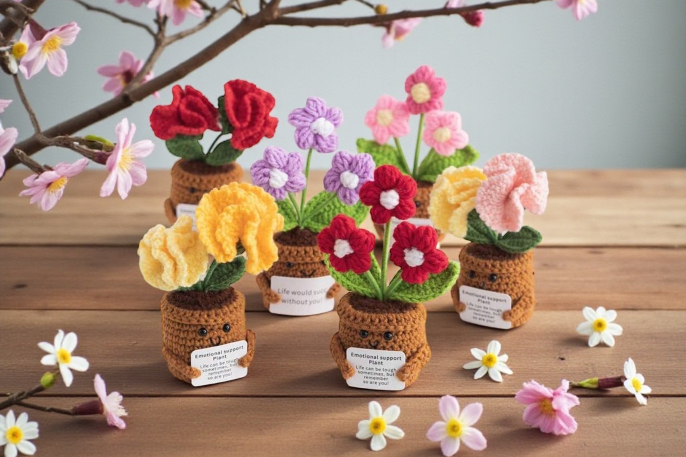 Cheerful Crochet Sunflower in Pot, Handmade Blooming Desk & Home Décor